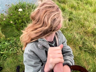 punk redhead gives blowjob and cum on her tits