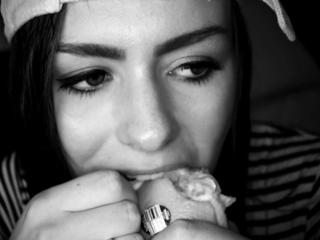 Sexy Brunette Babe Spreads Legs And Masturbates Shaven Twat