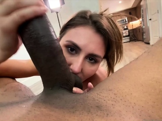 Gorgeous blonde teen whore giving awesome big cock handjob