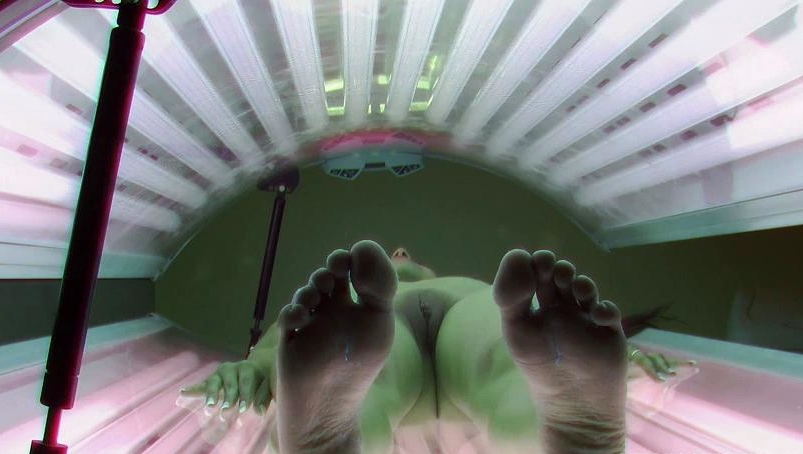 Gypsy playing with her pussy in solarium