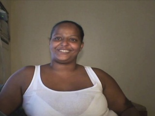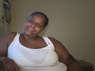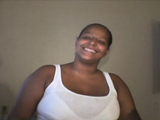 Dark skinned whore Cassy flashes her big tits and blows a white pole