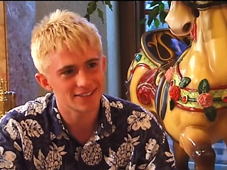 Blond twink gets hot cum all over his face in a naughty gay threesome