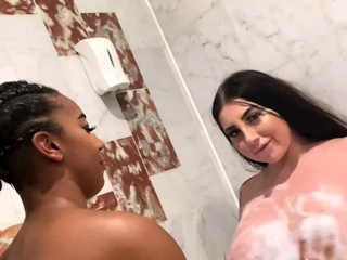 Interracial shower sex with a busty babe