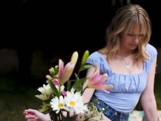 Big boobed blondie having a naked picnic