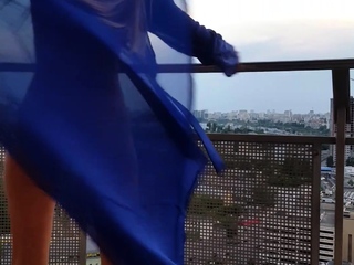 Amateur blonde jerks off cock outdoors