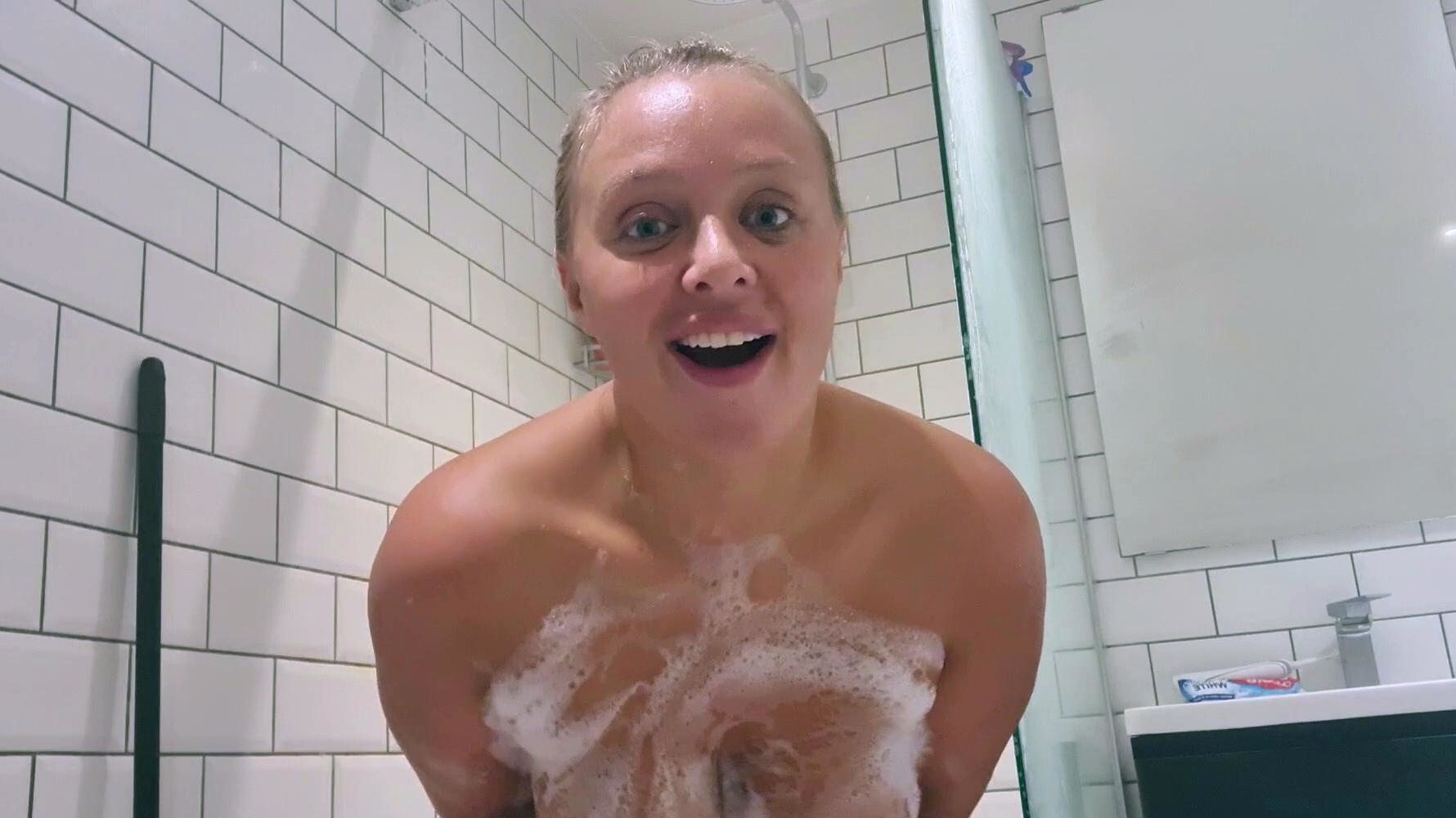 Amateur blonde masturbate when taking shower