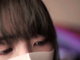 Horny amateur masked Asian teen toying on webcam show