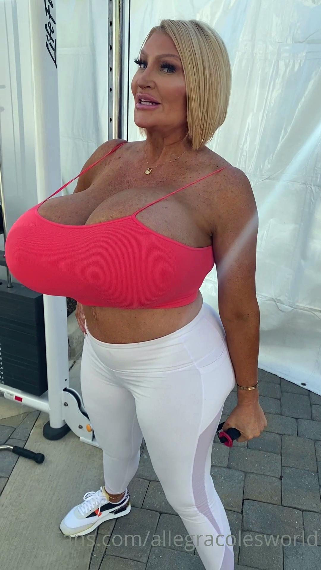 Blonde is flashing her big boobs in the outdoors