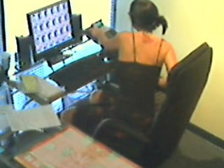 Naughty receptionist gets caught pleasing herself by a hidden camera