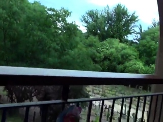 Sexy girl suck cock passionately on the balcony